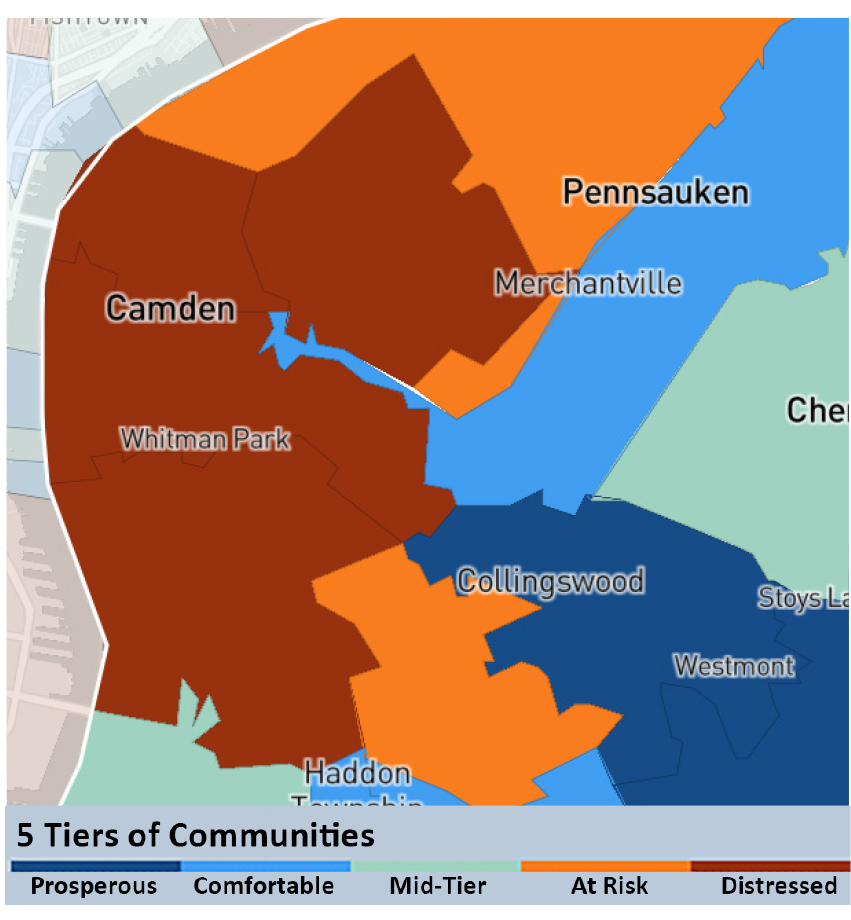 Every zip code in Camden is ‘highly distressed’ according to the Distressed Communities Index. The DCI is a tool created by the Economic Innovation Group (EIG) to map economic well-being across the United States at the zip code level.